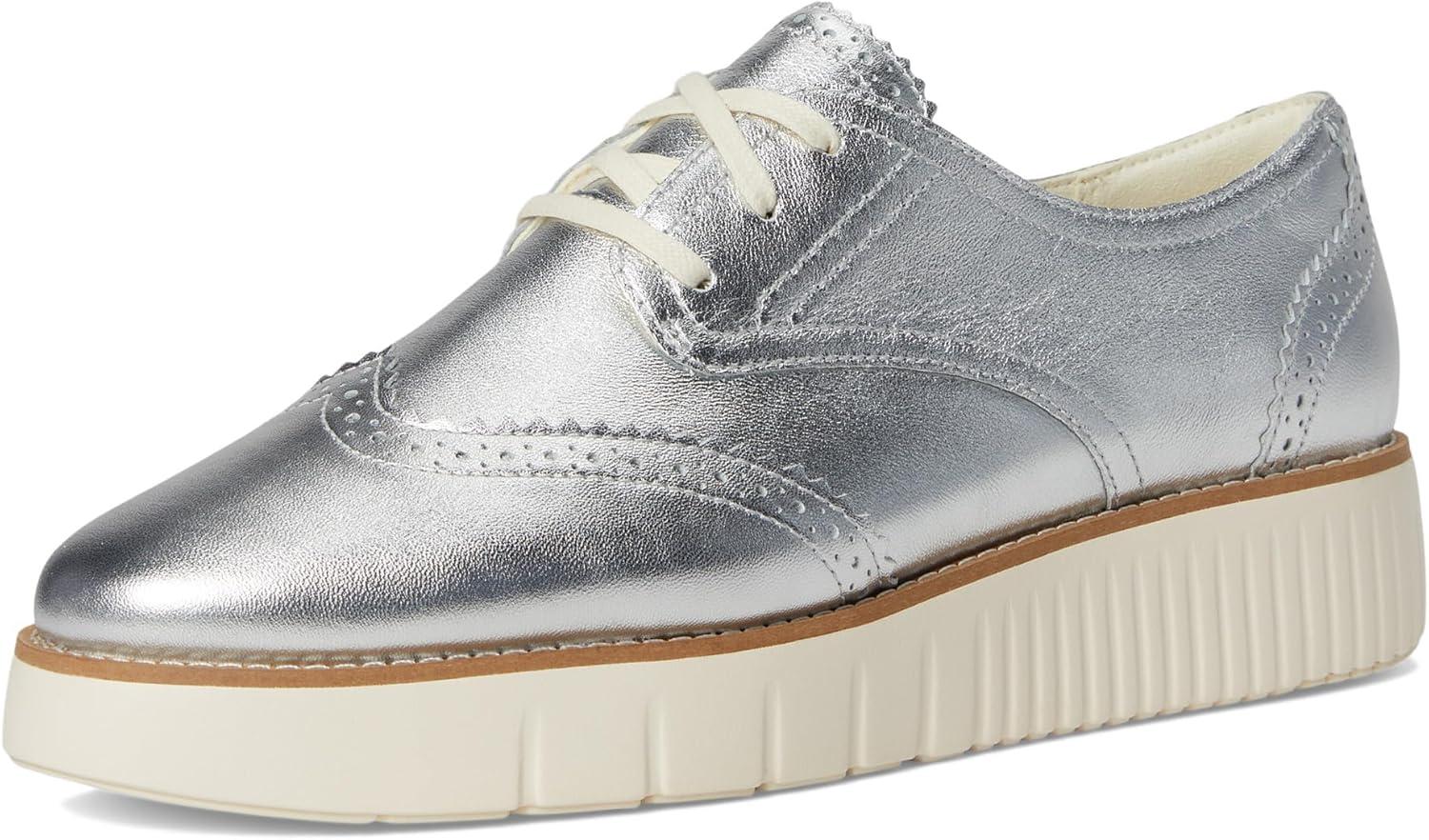 Cole Haan Women’s Grand City Platform Oxford Shoes(Silver Talca/Ivory)