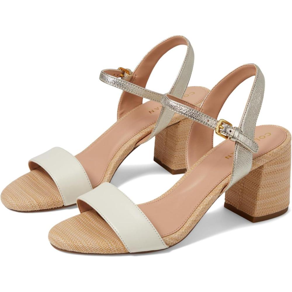 Cole Haan Women’s Josie Block Heel Sandal(Ivory/Soft Gold Ltr/Nat Woven)