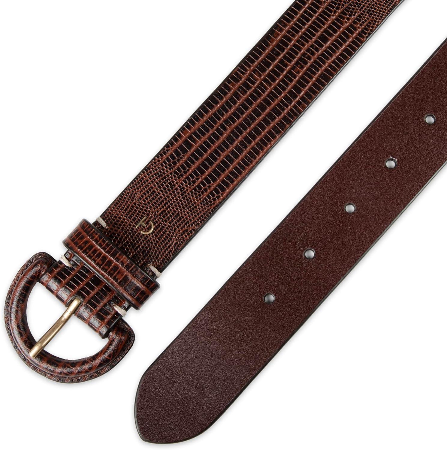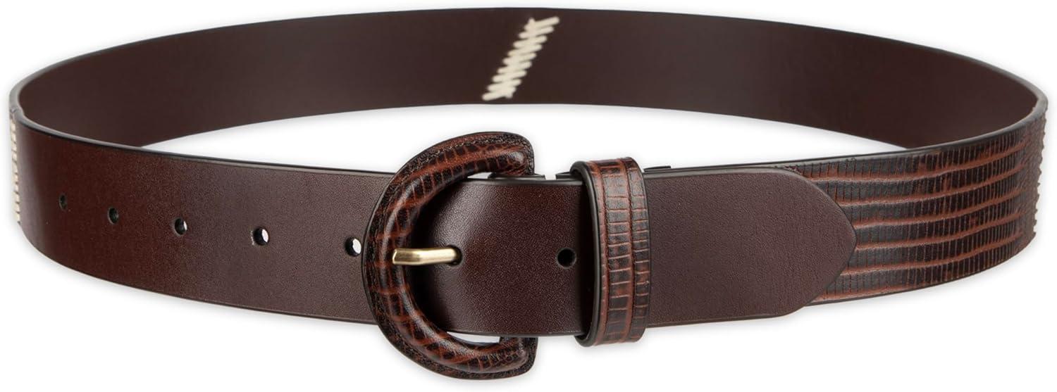 Cole Haan Women’s Leather Covered Buckle Wide Width Belt for Dresses, Jeans, Trousers(Brown Lizard)