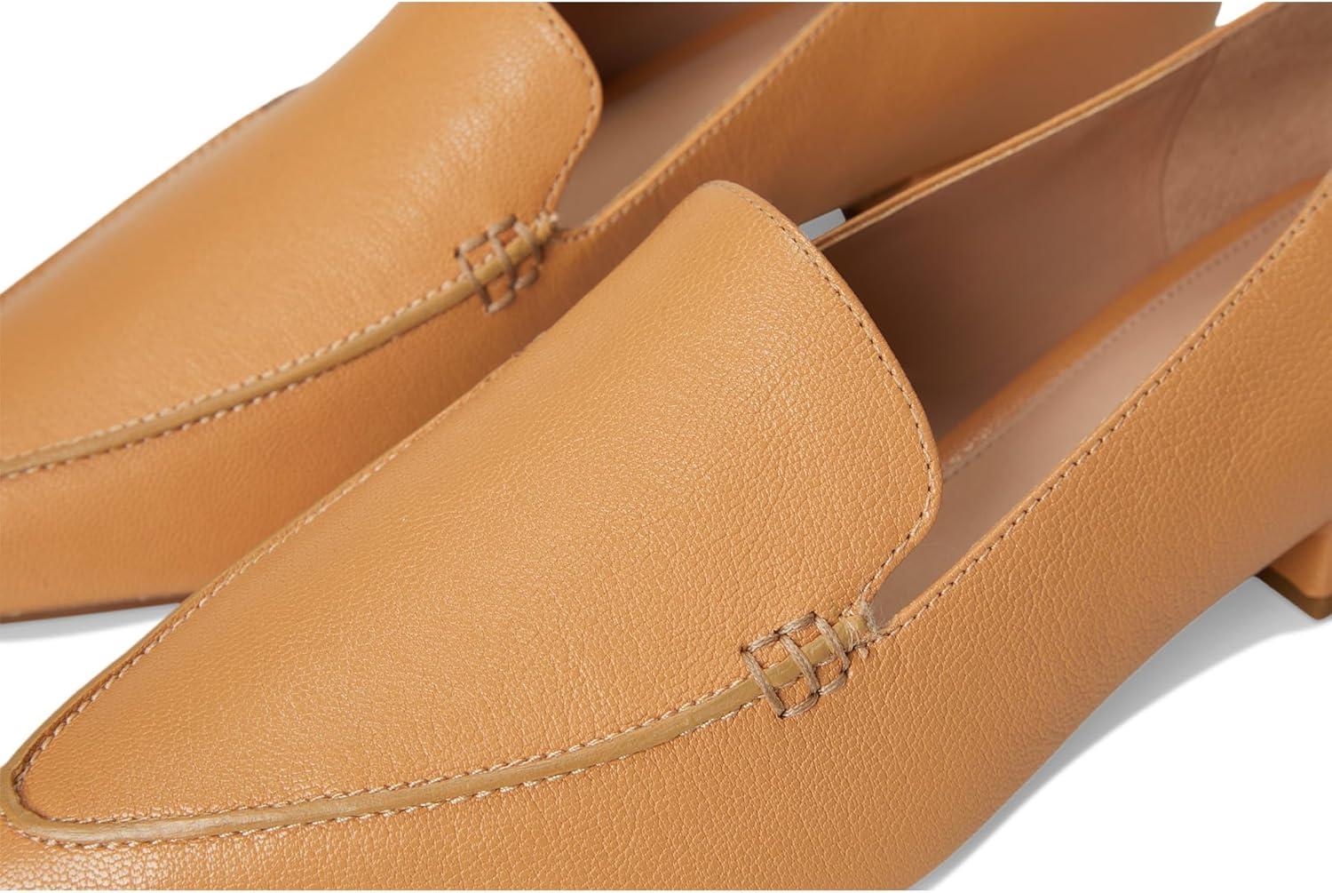 Pointed toe venetian loafer silhouette with crafted box stitch detail on the upper. Fully padded foam sock liner for added comfort. PU lined. Buffed Synthetic Outsole that contains 32% recycled rubber content with weave laser design at forepart for traction. 25 mm heel height.