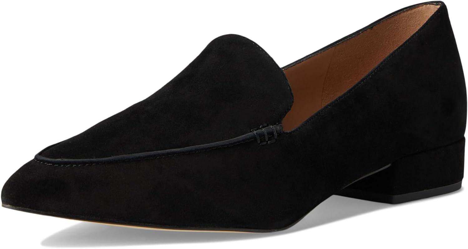 Pointed toe venetian loafer silhouette with crafted box stitch detail on the upper. Fully padded foam sock liner for added comfort. PU lined. Buffed Synthetic Outsole that contains 32% recycled rubber content with weave laser design at forepart for traction. 25 mm heel height.