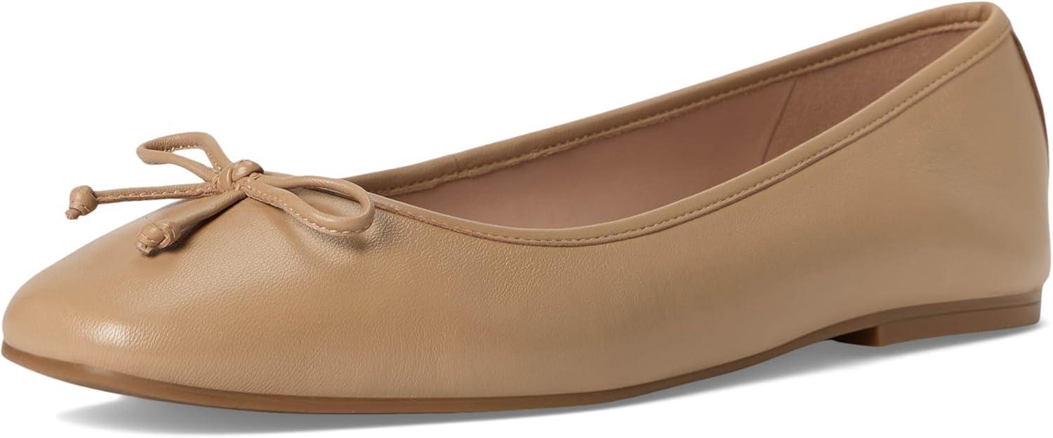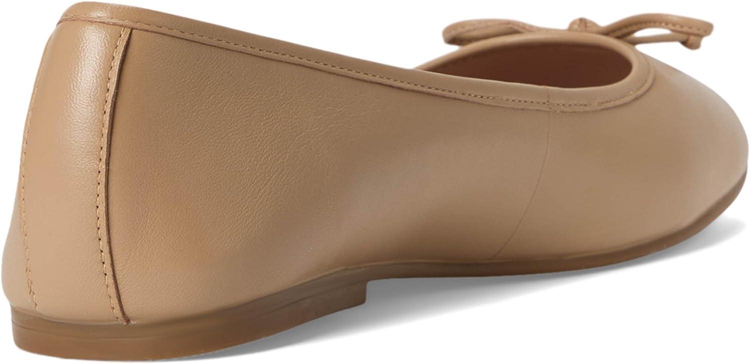 A square-toe ballet flat features a delicate binding that gracefully encircles the topline, adding a touch of refinement.At the front, a charming bow detail provides a sweet and classic accent. The back counter is finished with a strip of grosgrain, enhancing the shoe's structure and visual appeal.For exceptional comfort, the interior boasts a fully padded foam sock liner, ensuring a cushioned step.The shoe is lined with PU, offering a smooth and durable finish, while the rubber outsole provides reliable traction for confident movement