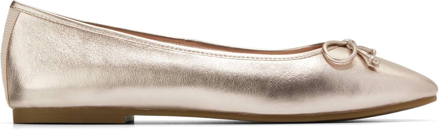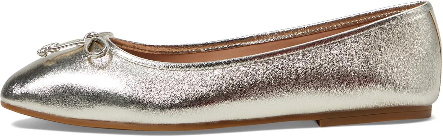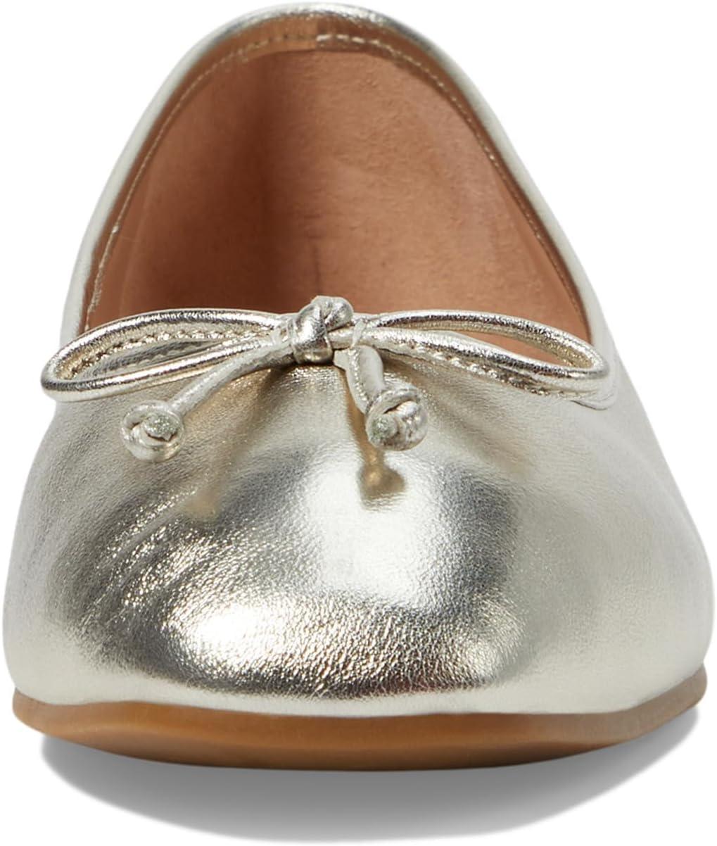A square-toe ballet flat features a delicate binding that gracefully encircles the topline, adding a touch of refinement.At the front, a charming bow detail provides a sweet and classic accent. The back counter is finished with a strip of grosgrain, enhancing the shoe's structure and visual appeal.For exceptional comfort, the interior boasts a fully padded foam sock liner, ensuring a cushioned step.The shoe is lined with PU, offering a smooth and durable finish, while the rubber outsole provides reliable traction for confident movement