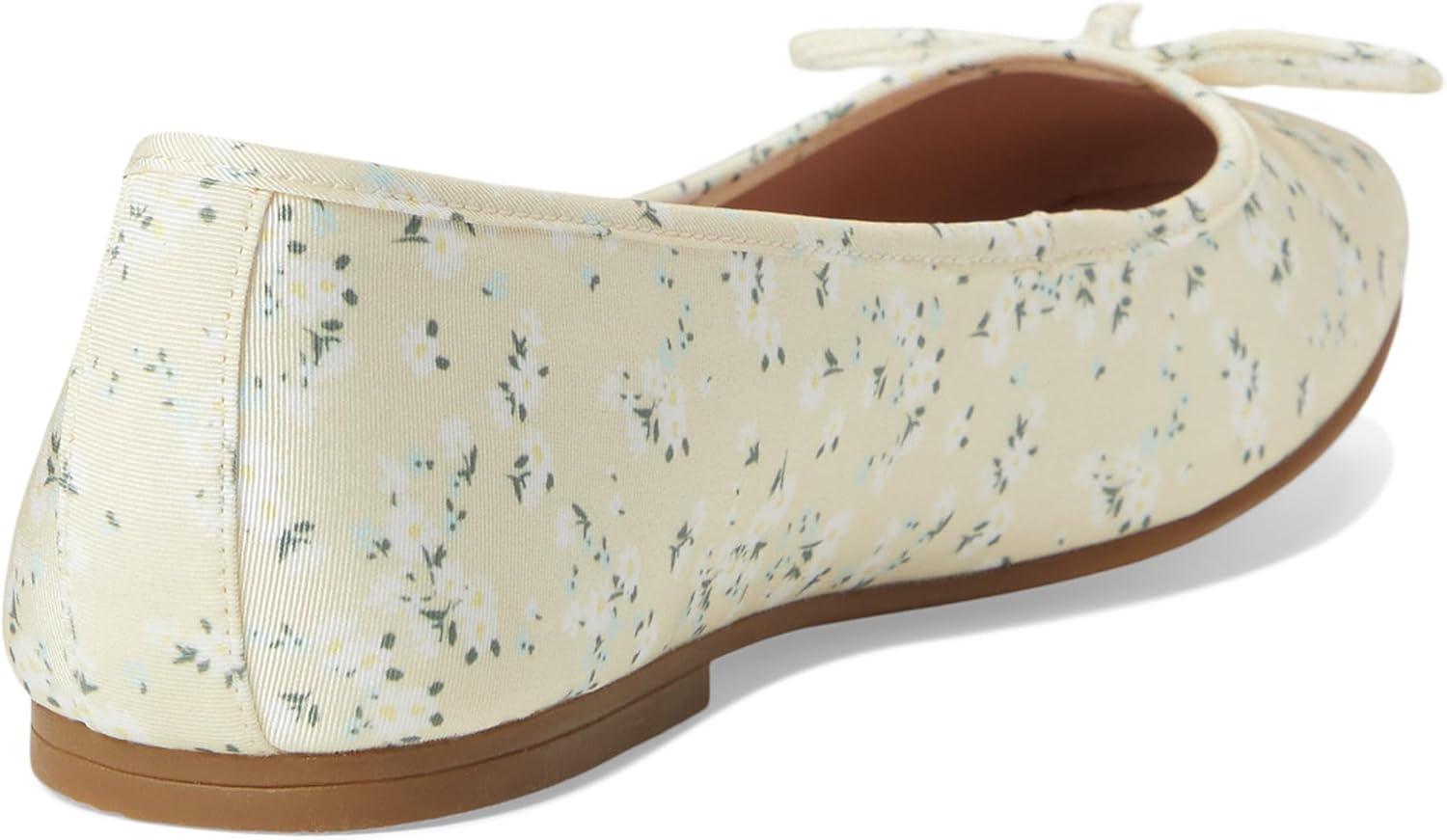 A square-toe ballet flat features a delicate binding that gracefully encircles the topline, adding a touch of refinement.At the front, a charming bow detail provides a sweet and classic accent. The back counter is finished with a strip of grosgrain, enhancing the shoe's structure and visual appeal.For exceptional comfort, the interior boasts a fully padded foam sock liner, ensuring a cushioned step.The shoe is lined with PU, offering a smooth and durable finish, while the rubber outsole provides reliable traction for confident movement